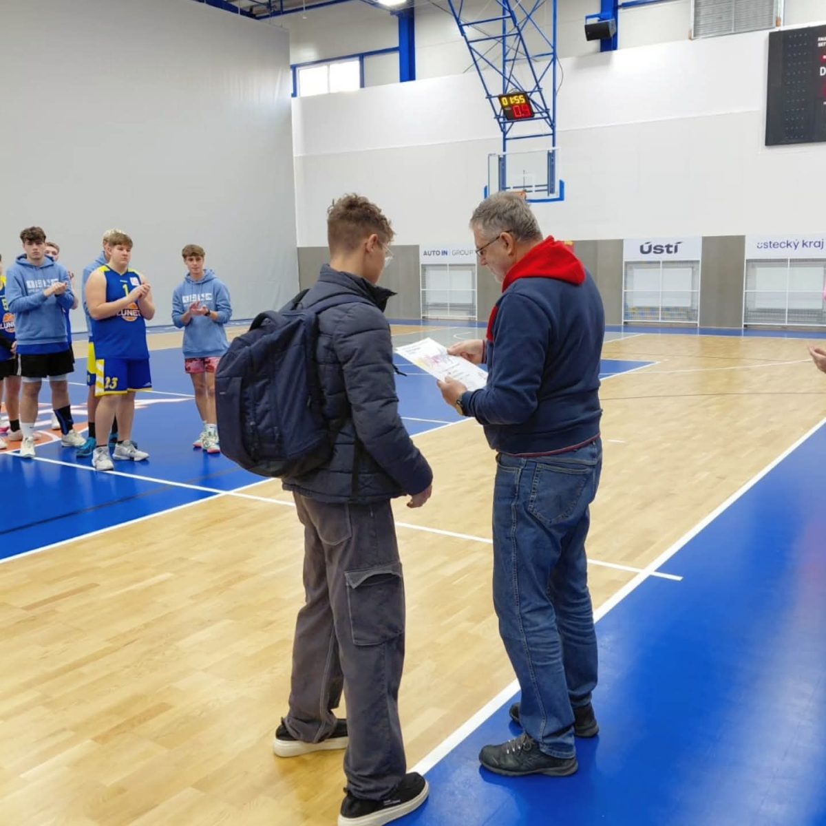 V pátek 7.11. se naši chlapci zúčastnili krajského finále v basketbale v Ústí nad Labem. Bohužel jsme těsně před turnajem přišli o svého kapitána Petra Vondráčka ( extraliga U19 ) a dalšího z tahounů Tomáše Pospíšila z důvodů zranění a nemoci. I tak jsme se s velmi mladým týmem vydali sbírat zkušenosti na další rok. Nakonec to bylo tažení úspěšné a kluci zaslouží velkou poklonu za bojovné výkony. Ve skupině jsme porazili Litoměřice a prohráli s Ústím, což nás poslalo do čtvrtfinále s Teplicemi, které jsme zodpovědným výkonem poslali domů a vybojovali si tím boje o medaile. V semifinále jsme prohráli s Děčínem, který nakonec vyhrál celý turnaj.