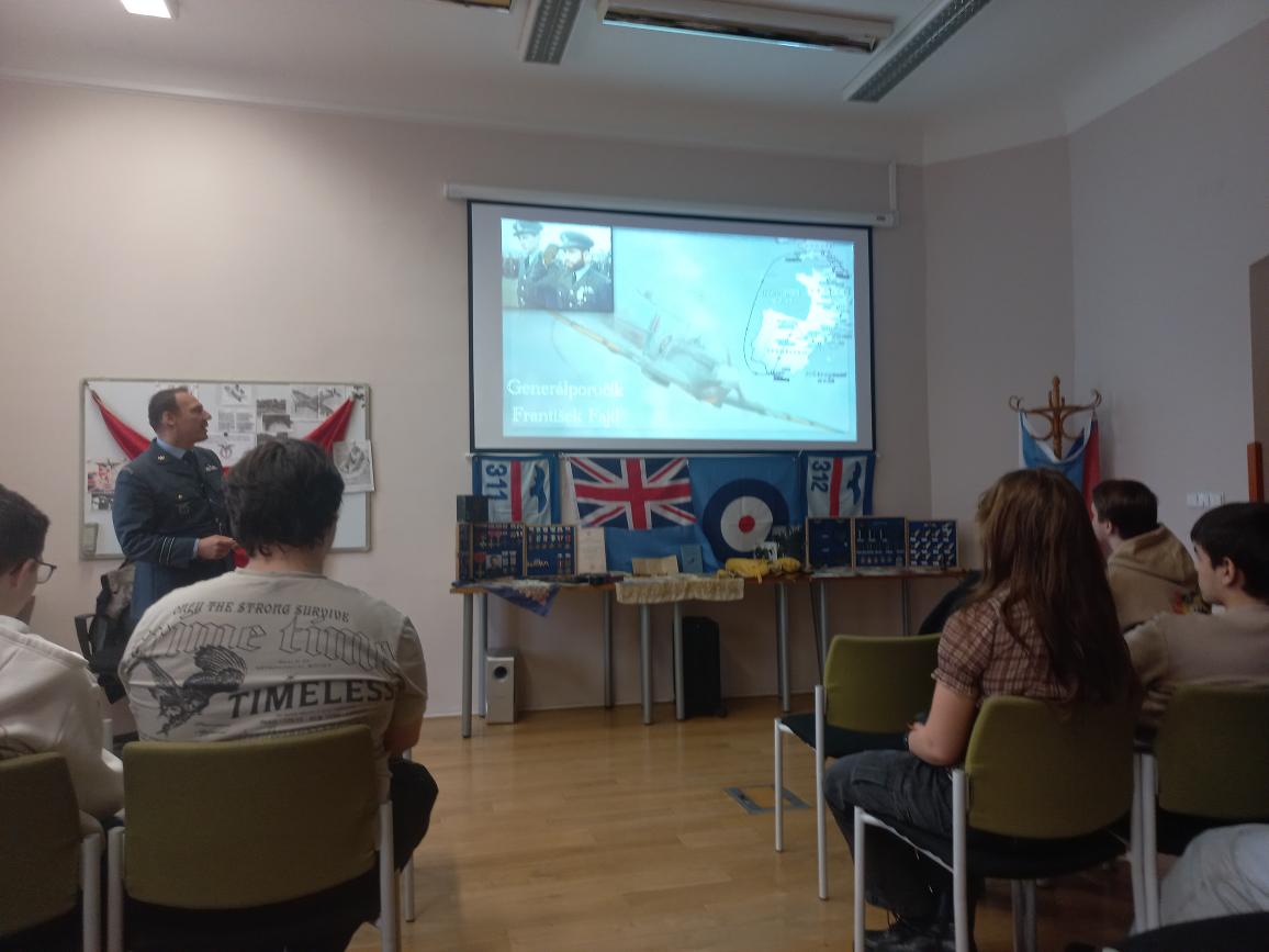Studenti druhých ročníků všech maturitních oborů se ve středu 12. listopadu zúčastnili besedy o českých letcích bojujících v Británii za 2. světové války. V kongresovém sále Městské knihovny Louny se duchem přenesli do předválečného období, poznali naše letce, prožili s nimi druhou světovou válku a se zármutkem se dozvěděli, jak s nimi komunistický režim nespravedlivě zacházel. Někteří z nich všechna ta utrpení přežili a byli oceněni za hrdinství – včetně generála Františka Fajtla, na jehož počest je pojmenována naše škola. Po hodině a půl velmi poutavého vyprávění studenti odcházeli s pocitem vlastenectví, obdivu vůči letcům a vědomím, že když nejde o život, tak nejde o nic.