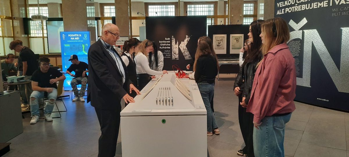 Dne 14. 10. 2025 navštívil Českou národní banku také 3. ročník Obchodní akademie. Exkurze do České národní banky (ČNB) zaměřená na měnovou politiku a historický vývoj měny byla velmi poučná. Během návštěvy jsme se seznámili s rolí ČNB v ekonomice a jejími hlavními úkoly, jako je stabilizace cenové hladiny a regulace měnového trhu. Představili nám také proces vydávání bankovek a mincí, včetně ochranných prvků, které zajišťují jejich bezpečnost. Důležitým tématem byla i měnová politika, jejíž cílem je udržet inflaci na nízké a stabilní úrovni. Exkurze nám umožnila lépe pochopit, jak ČNB ovlivňuje ekonomiku a jak se měnová politika promítá do každodenního života obyvatel.