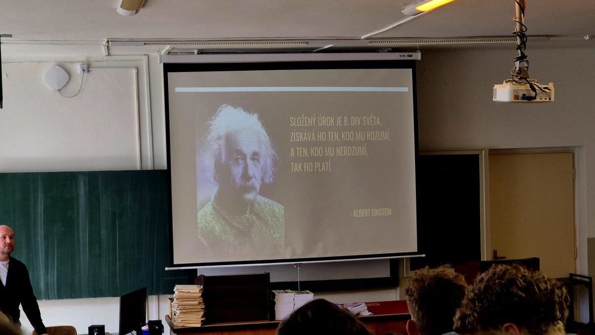 Dne 23. 4. 2026 se studenti tříd OAK2, VSP3 a STR3 zúčastnili odborné přednášky na téma Finanční gramotnost. Cílem přednášky bylo přiblížit studentům základní principy správného hospodaření s financemi a upozornit na důležitost finančního plánování v osobním i profesním životě.