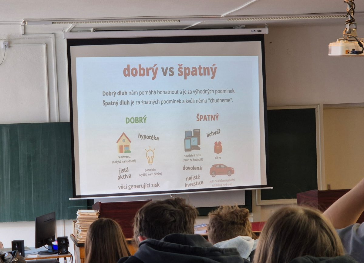 Během přednášky lektor zdůraznil některá klíčová hesla. Mezi ně patřilo například „Nechte své peníze vydělávat.“ nebo „Držte si finanční železnou rezervu.“ Zajímavá byla také myšlenka: „Pokud se zadlužit, tak jedině Studenti si tak mohli uvědomit, jak velký vliv může mít porozumění finančním principům na jejich budoucí finanční situaci. dobrým dluhem.“