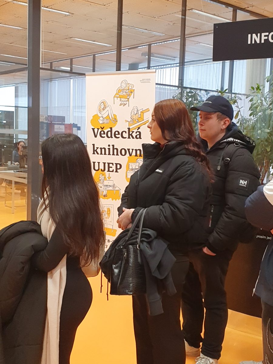 Po přednášce následovala prohlídka kampusu, který na středoškoláky zapůsobil svou moderností i živou atmosférou. Všude bylo cítit, že univerzita je místem, kde se potkává studium s každodenním životem a kde se rodí nové nápady. Zvláštní zastávkou byla univerzitní knihovna. Žáky překvapilo, že nejde jen o prostor pro tiché studium, ale také o místo, kde se dají realizovat projekty, vést diskuze a setkávat se s ostatními. Nadchlo je nejen bohaté vybavení, ale i prostory určené ke studiu a odpočinku.